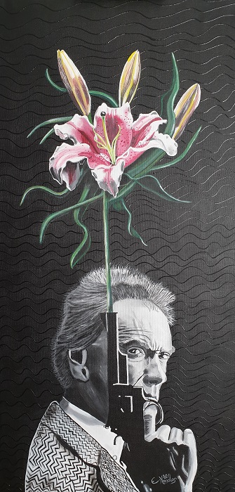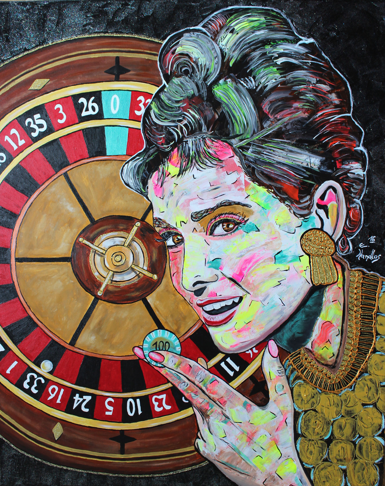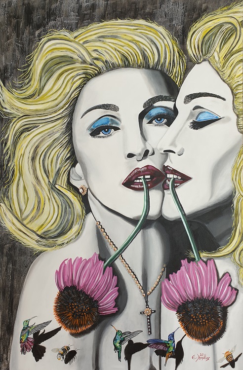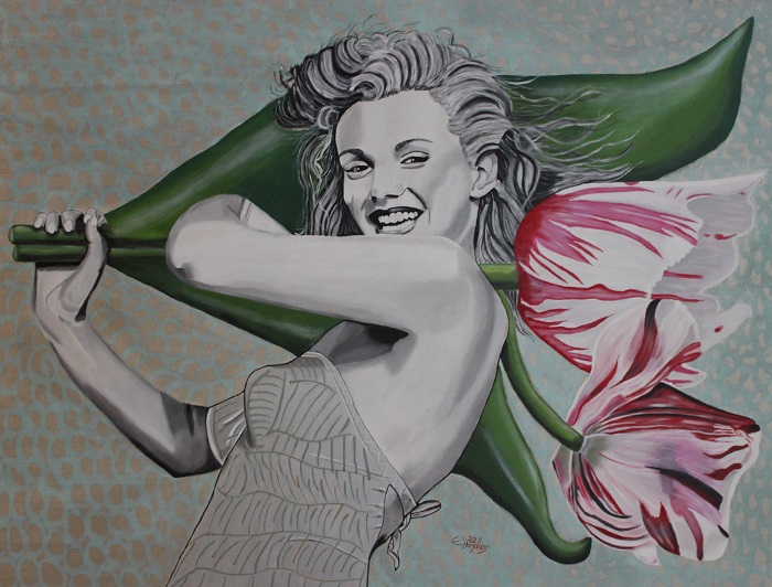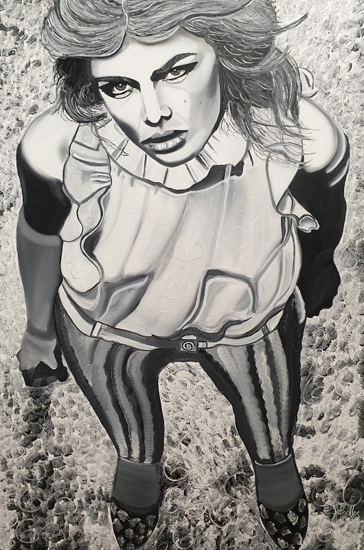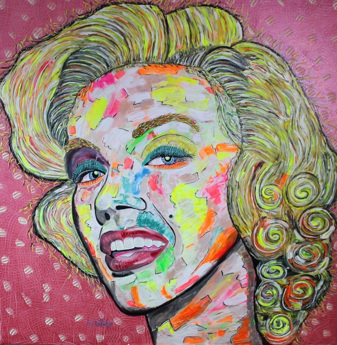 Der Künstler Erich Handlos beim Malen des Werkes "Marilyn 3" wild serie